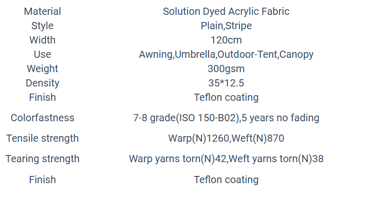 Kain akrilik dijuluki sebagai "standar emas" dalam bidang naungan luar ruangan. Kain ini secara sempurna menggabungkan
